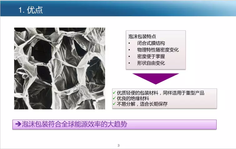 EPS它具有质轻、高强度、防腐、导热系数小、吸水率低、耐水、耐老化、耐低温、易加工、价廉质优等优点。目前各类工业、商业、药业、食品酒业以及各电商物流包装、和建筑节能板块的比例呈上升趋势。
